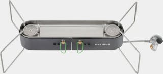 Two burner gas stove for your camping kitchen. Utilizes hiking gas canisters.