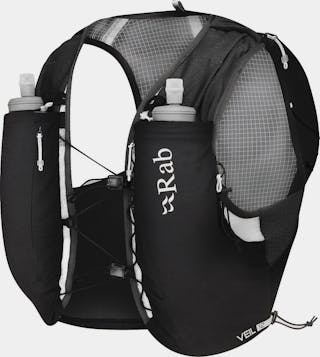 A snug-fitting six-liter running pack. Includes two flasks.