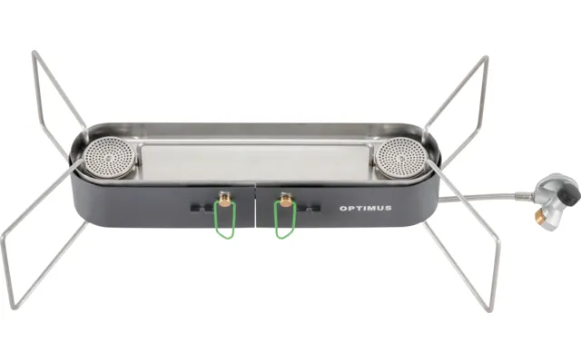 Two burner gas stove for your camping kitchen. Utilizes hiking gas canisters.