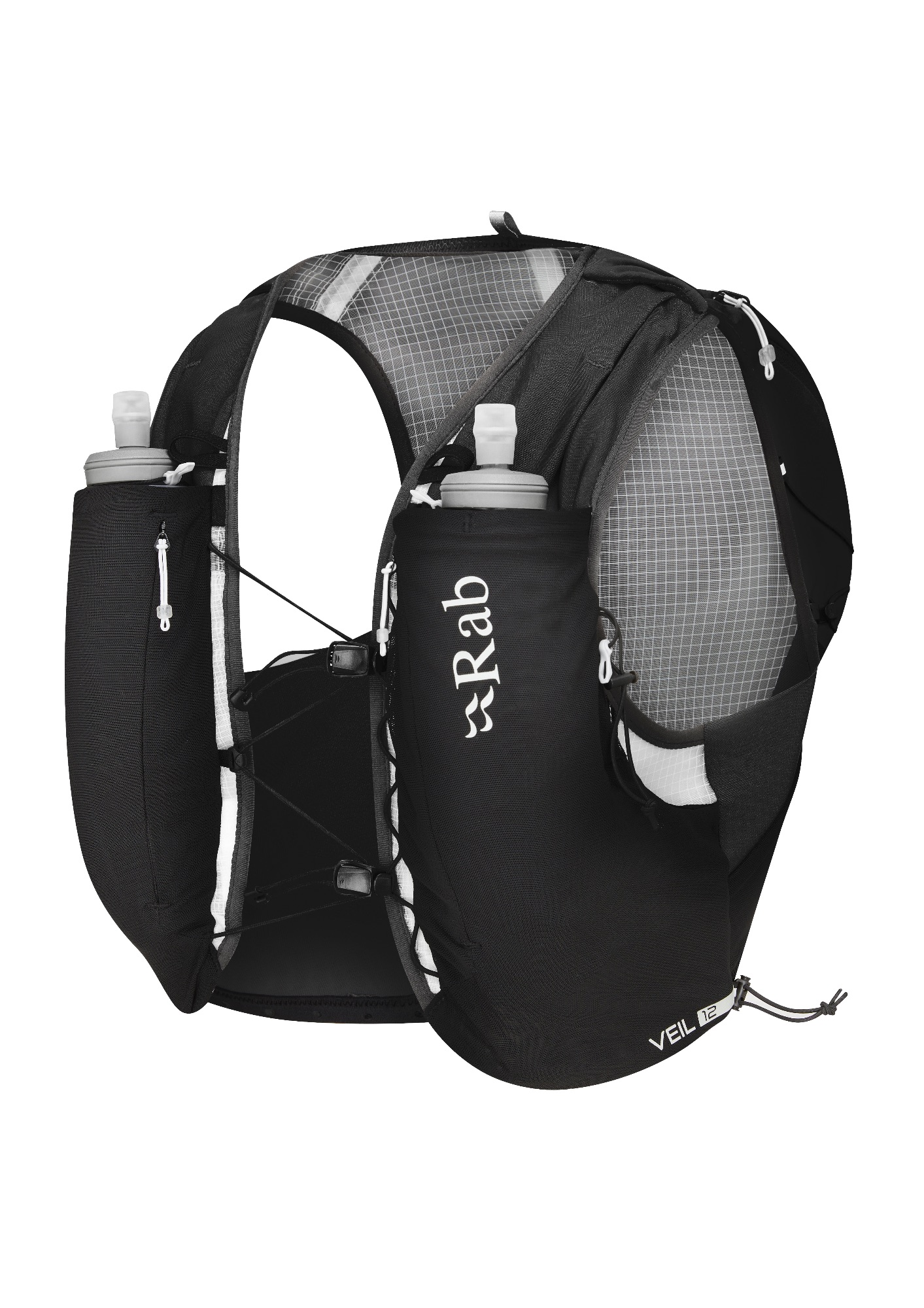 A quiver-style pole holder and front pockets for soft flasks - a running vest for active use!