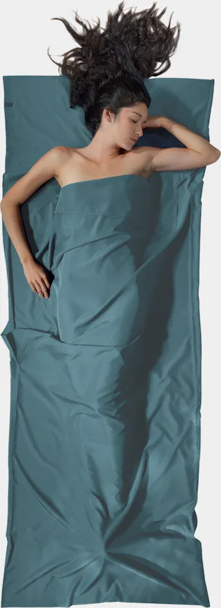 A sleeping bag liner made of renewable Lyocell with a luxurious feel.
